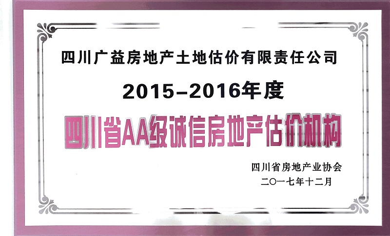 2015-2016年AA级诚信机构证书